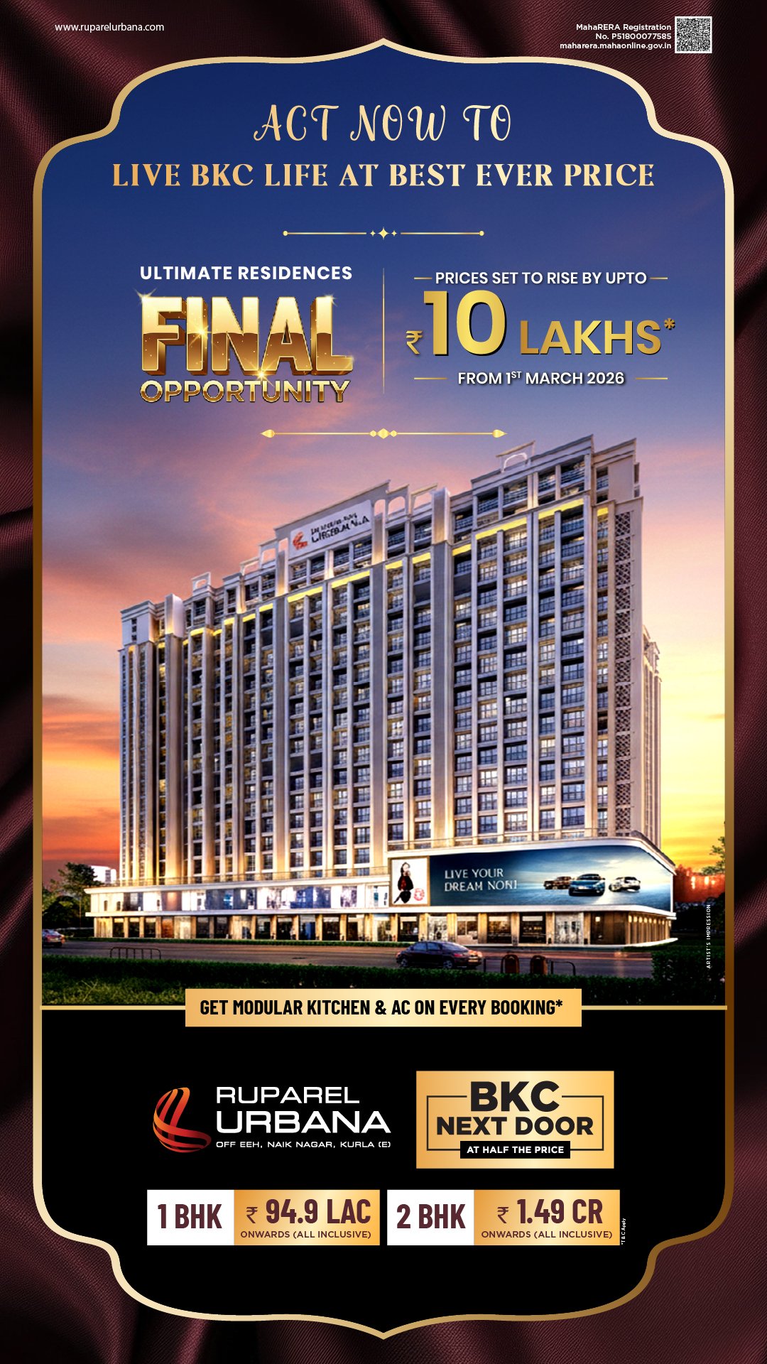 Today, owning a home in any Grade-A development in and around BKC costs minimum 3Cr. Ruparel Urbana gives a one-of-its-kind opportunity to acquire your dream home at half the cost.